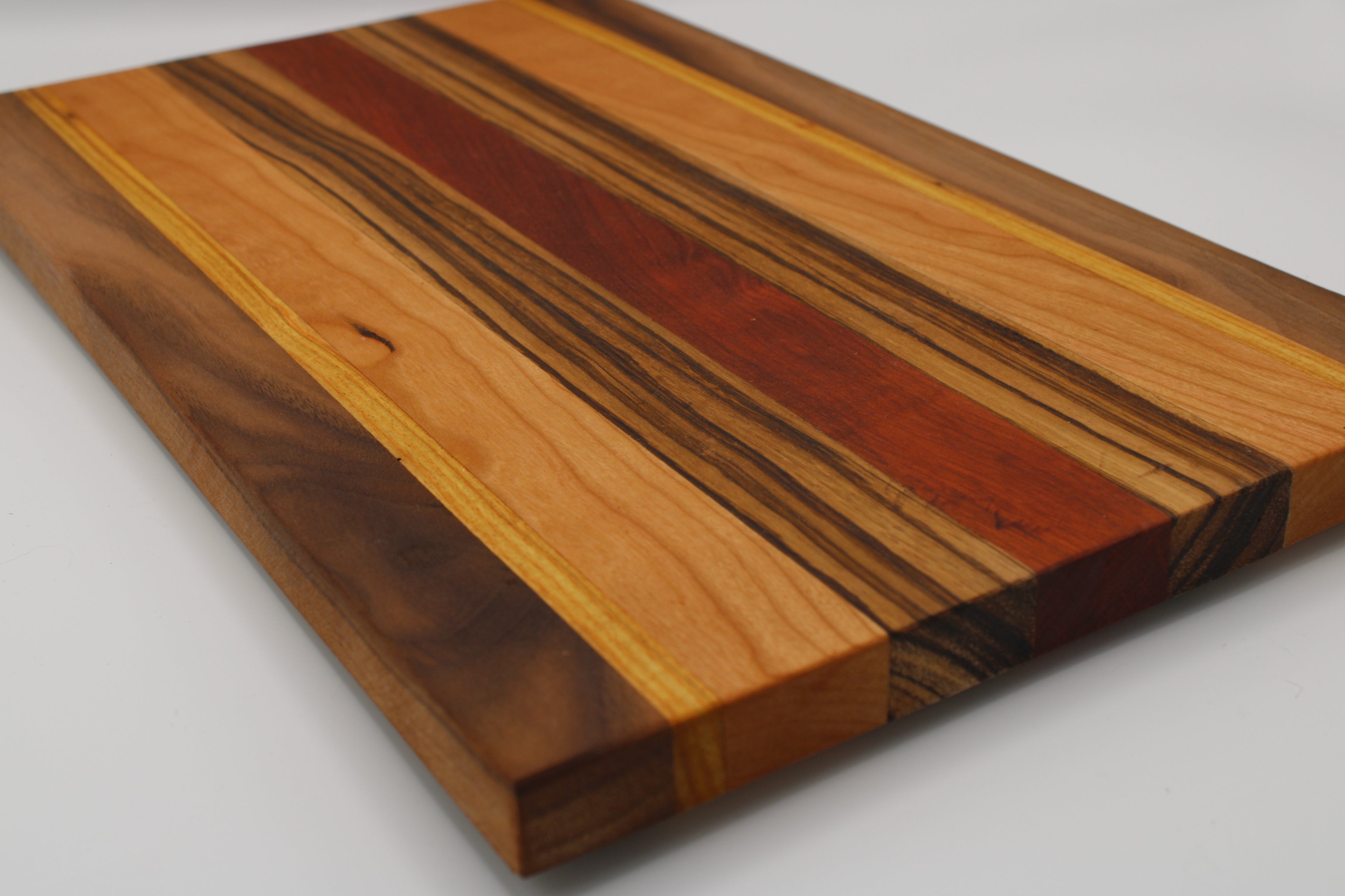 All of our cutting boards are handcrafted and completely food safe. No stain is ever used so the wood is in its natural state of color. Every item will have its own unique qualities and no two boards are the same. All measurements are approximate.