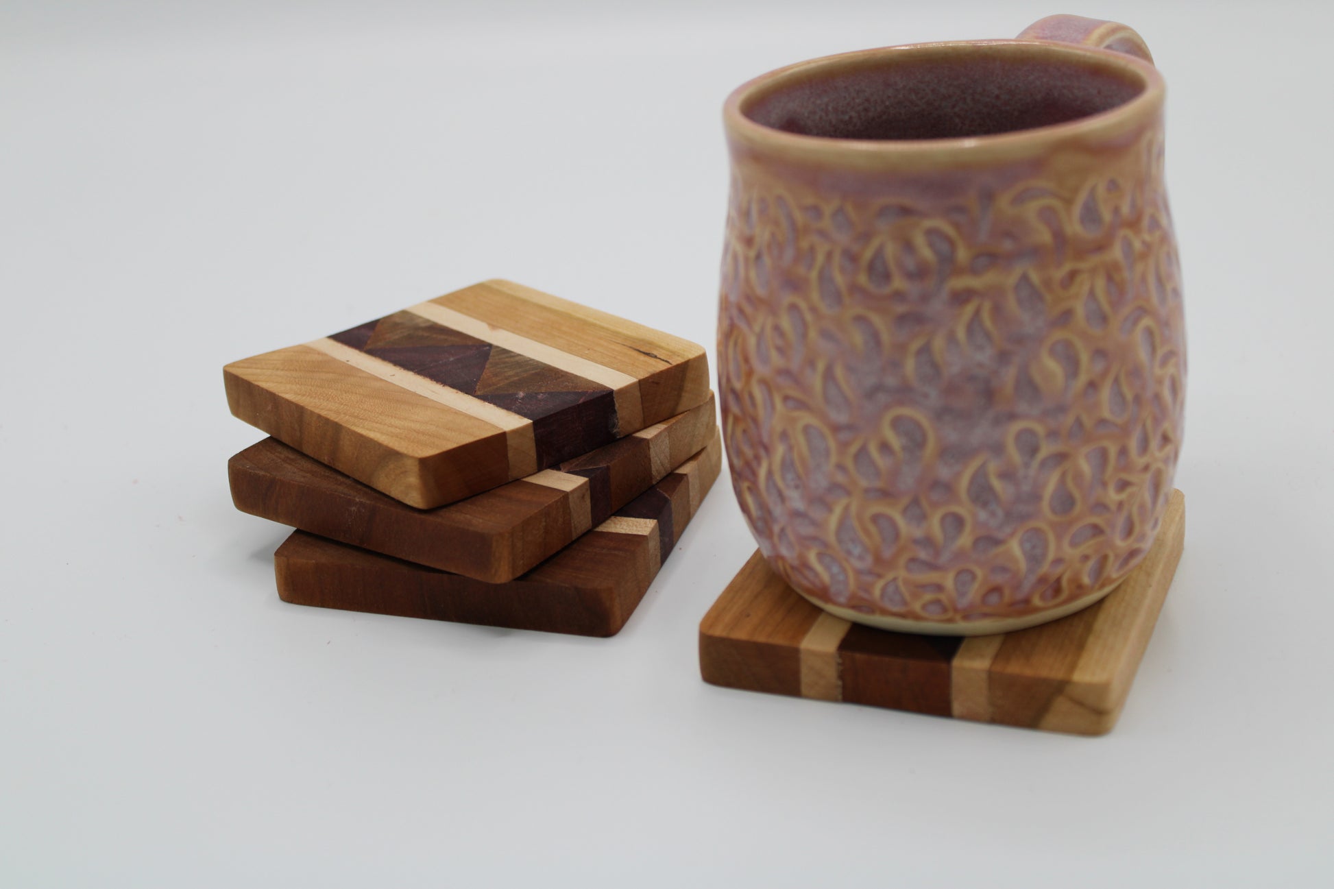 Protect your furniture from cold and hot drinks with a set of four hardwood coasters.