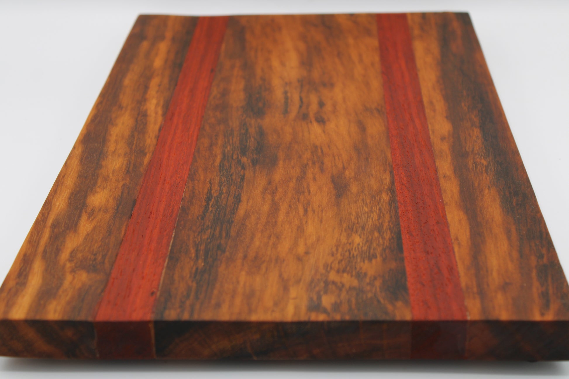 Design #168 - handmade with two different hardwoods - Tigerwood and Padauk - designed with five stripes and ready to take on any cutting task in your kitchen.