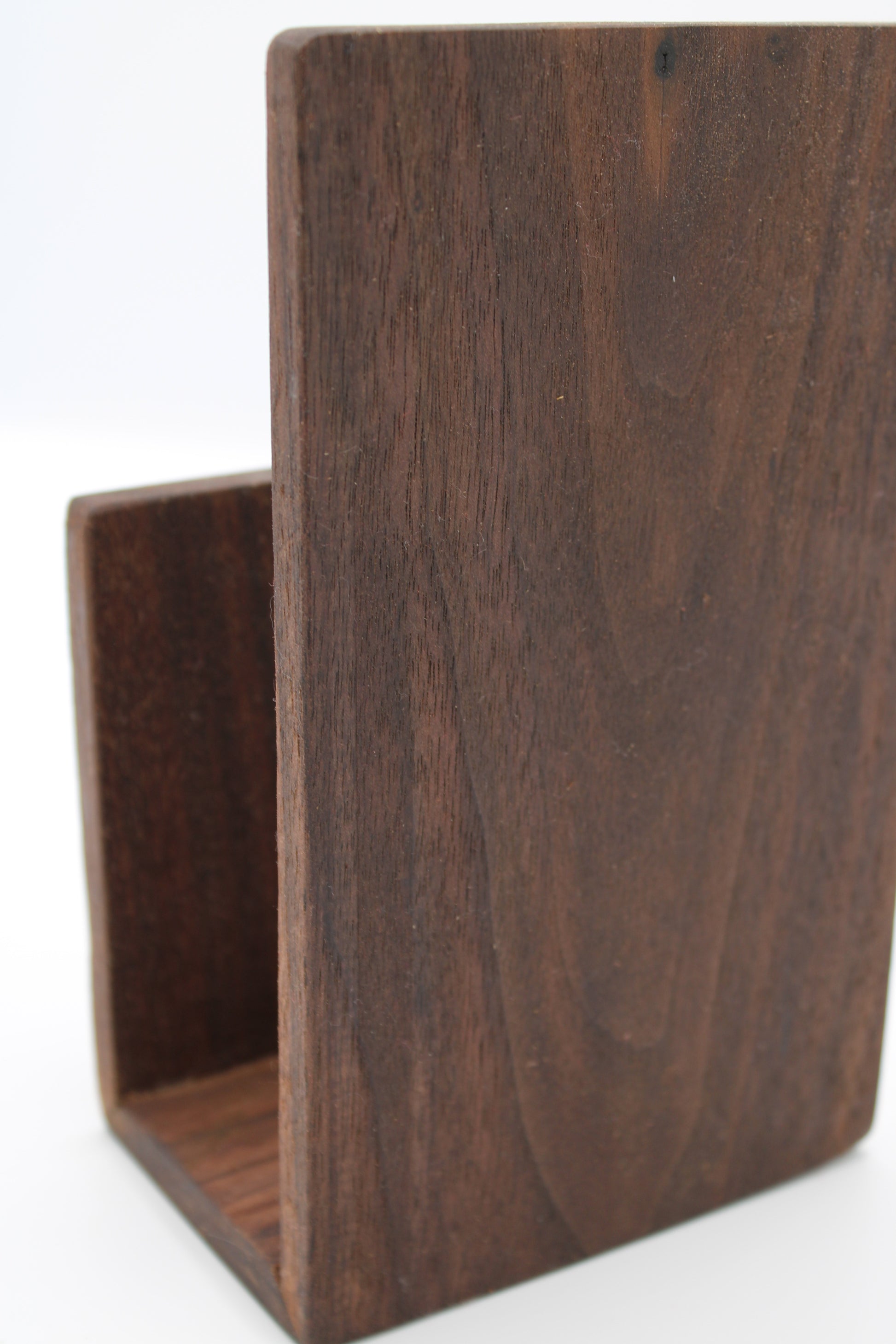Stylish hardwood napkin holder adds class to any decor. It could also be used for holding your mail or you electronic devices while they are charging! The perfect gift for someone who has everything! Handcrafted with Walnut hardwood. They can be passed down as a family heirloom since they can last for generations!